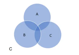 A = {a, e, I, o, u}, B = {a, d, e, o, v} and C = {e, o, t, m}.