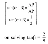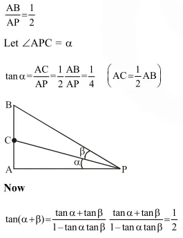 Let a vertical tower $\mathrm{AB}$ have its end $\mathrm{A}$ on the level ground. Let $\mathrm{C}$ be the mid-point $\tan \beta$ is equal to :-