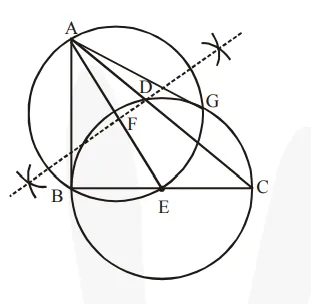 Consider the following situation. If a circle is drawn through $\mathrm{B}, \mathrm{D}$, and $\mathrm{C}, \mathrm{BC}$ will be its diameter as $\angle \mathrm{BDC}$ is of measure $90^{\circ}$. The centre $\mathrm{E}$ of this circle will be the midpoint of BC.