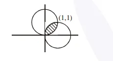 required area $=2 \int_{0}^{1}\left(\sqrt{2 x-x^{2}}-x\right) d x=\frac{\pi}{2}-1$