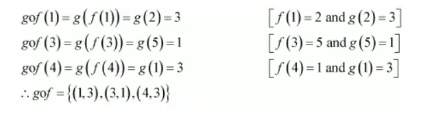 Let $f:\{1,3,4\} \rightarrow\{1,2,5\}$ and $g:\{1,2,5\} \rightarrow\{1,3\}$ be given by $f=\{(1,2),(3,5),(4,1)\}$ and $g=\{(1,3),(2,3),(5,1)\}$. Write down gof.