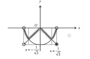 Let $f:(-1,1) \rightarrow \mathbf{R}$ be a function defined by $f(x)=\max$ $\left\{-|x|,-\sqrt{1-x^{2}}\right\} .$ If $\mathrm{K}$ be the set of all points at which $f$ is not differentiable, then $\mathrm{K}$ has exactly: