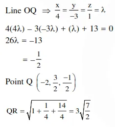Question: Let $Q$ be the foot of perpendicular from the origin to the plane $4 x-3 y+z+13=0$ and $R$ be a point $(-1,1,-6)$ on the plane. Then length $Q R$ is :