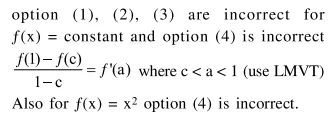 Let $\mathrm{S}$ be the set of all functions $f:[0,1] \rightarrow \mathrm{R}$, which are continuous on $[0,1]$ and differentiable on $(0,1)$. Then for every $f$ in $\mathrm{S}$, there exists a $\mathrm{c} \in(0,1)$, depending on $f$, such that