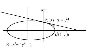 $=\int_{1}^{\sqrt{5}}\left(\frac{5-x}{4}-\frac{\sqrt{5-x^{2}}}{2}\right) \mathrm{dx}$