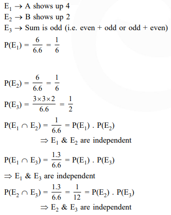 Let two fair six-faced dice $\mathrm{A}$ and $\mathrm{B}$ be thrown simultaneously. If $\mathrm{E}_{1}$ is the event that die A shows up four, $E_{2}$ is the event that die $B$ shows up two and $E_{3}$ is the event that the sum of numbers on both dice is odd, then which of the following statements is NOT true?