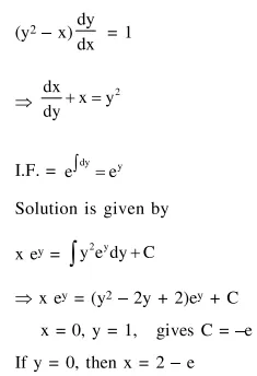 differential cquation, $\quad\left(\mathrm{y}^{2}-\mathrm{x}\right) \frac{\mathrm{dy}}{\mathrm{dx}}=1$,
