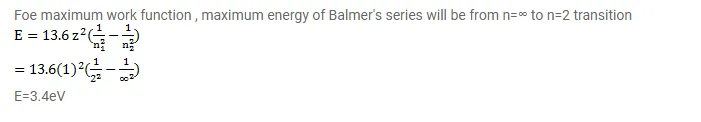 Light from Balmer series of hydrogen is able to eject photoelectrons from a metal. What can be the maximum work function of the metal?