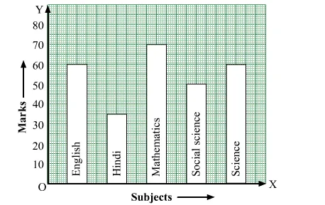 (i) The bar graph shows the marks obtained by a student in various subjects in an examination.