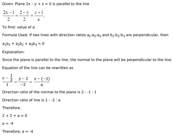 If the plane $2 x-y+z=0$ is parallel to the line $\frac{2 x-1}{2}=\frac{2-y}{2}=\frac{z+1}{a}$, then the value of $a$ is