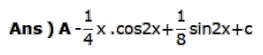 A. $-\frac{1}{4} x \cos 2 x+\frac{1}{8} \sin 2 x+C$