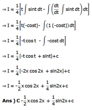 A. $\frac{1}{2} \mathrm{x} \cos 2 \mathrm{x}+\frac{1}{4} \sin 2 \mathrm{x}+\mathrm{C}$