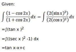 $\int \frac{(1-\cos 2 x)}{(1+\cos 2 x)} d x=?$