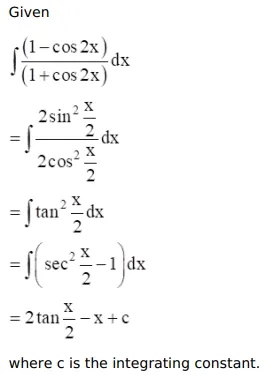 $\int \frac{(1-\cos 2 x)}{(1+\cos 2 x)} d x=?$