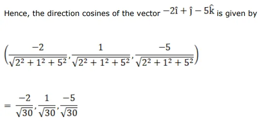 The direction cosines of the vector $\overrightarrow{\mathrm{a}}=(-2 \hat{\mathrm{i}}+\hat{\mathrm{j}}-5 \hat{\mathrm{k}})$ are