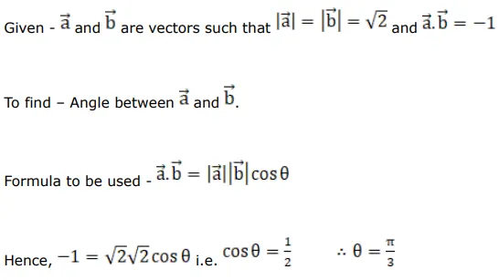 If $\vec{a}$ and $\vec{b}$ are two vectors such that $|\vec{a}|=|\vec{b}|=\sqrt{2}$ and $\vec{a} \cdot \vec{b}=-1$ then the angle between