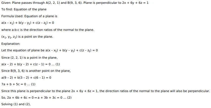 The equation of the plane passing through the points $\mathrm{A}(2,2,1)$ and $\mathrm{B}(9,3,6)$ and perpendicular to the plane $2 x+6 y+6 z=1$, is