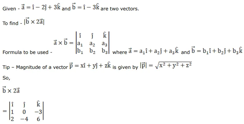 If $\vec{a}=(\hat{i}-2 \hat{j}+3 \hat{k})$ and $\overrightarrow{\mathrm{b}}=(\hat{\mathrm{i}}-3 \hat{\mathrm{k}})$ then $|\overrightarrow{\mathrm{b}} \times 2 \overrightarrow{\mathrm{a}}|=?$