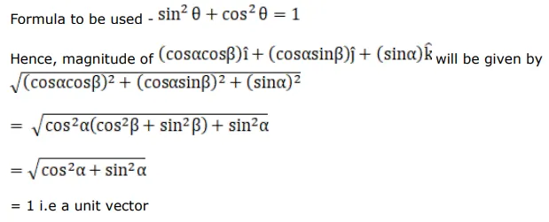 The vector $(\cos \alpha \cos \beta) \hat{i}+(\cos \alpha \cos \beta) \hat{j}+(\sin \alpha) \hat{k}$ is a