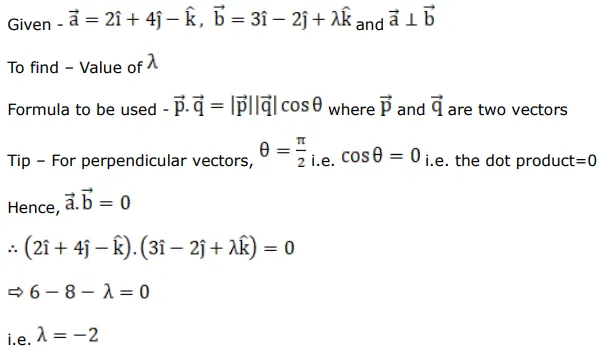 If $\overrightarrow{\mathrm{a}}=(2 \hat{\mathrm{i}}+4 \hat{\mathrm{j}}-\hat{\mathrm{k}})$ and $\overrightarrow{\mathrm{b}}=(3 \hat{\mathrm{i}}-2 \hat{\mathrm{j}}+\lambda \hat{\mathrm{k}})$ be such that $\vec{a} \perp \vec{b}$ then $\boldsymbol{\lambda}=$ ?