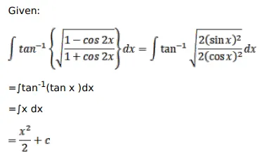 $\int \tan ^{-1}\left\{\sqrt{\frac{1-\cos 2 x}{1+\cos 2 x}}\right\} d x=?$