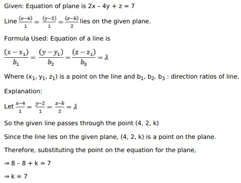 If the line $\frac{x-4}{1}=\frac{y-2}{1}=\frac{z-k}{2}$ lies in the plane $2 x-4 y+z=7$, then the value of $k$ is