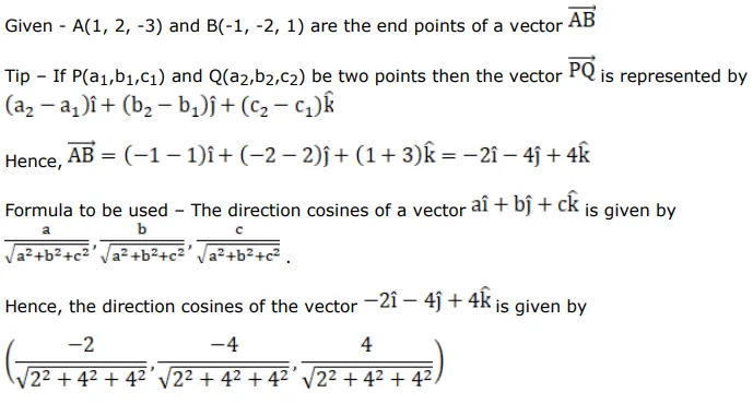 If $A(1,2,-3)$ and $B(-1,-2,1)$ are the end points of a vector $\overrightarrow{A B}$ then the direction cosines of $\overrightarrow{\mathrm{AB}}$ are