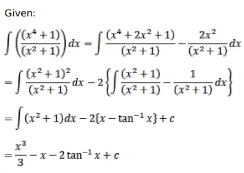 $\int\left(\frac{\left(x^{4}+1\right)}{\left(x^{2}+1\right)}\right) d x=?$