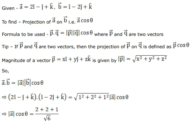 What is the projection of $\vec{a}=(2 \hat{j}-\hat{j}+\hat{k})$ on $\overrightarrow{\mathrm{b}}=(\hat{\mathrm{i}}-2 \hat{\mathrm{j}}+\hat{\mathrm{k}})$ $?$