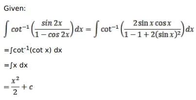 $\int \cot ^{-1}\left(\frac{\sin 2 x}{1-\cos 2 x}\right) d x=?$