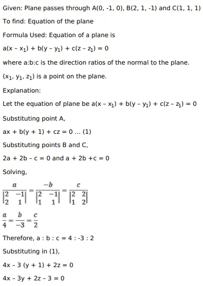 The equation of the plane passing through the points $A(0,-1,0), B(2,1,-1)$ and $C(1,1,1)$ is given by