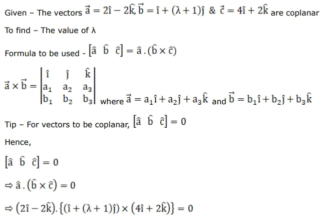 It is given that the vectors $\overrightarrow{\mathrm{a}}=(2 \hat{\mathrm{i}}-2 \hat{\mathrm{k}}), \overrightarrow{\mathrm{b}}=\hat{\mathrm{i}}+(\lambda+1) \hat{\mathrm{j}}$ and $\overrightarrow{\mathrm{c}}=(4 \hat{\mathrm{i}}+2 \hat{\mathrm{k}})$ are coplanar. Then, the value of $\lambda$ is