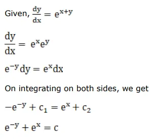 The solution of the []DE $\frac{d y}{d x}=e^{x+y}$ is