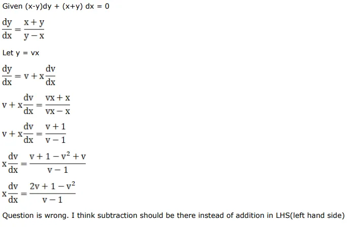 The general solution of the $\operatorname{DE}(x-y) d y+(x+y) d x$ is