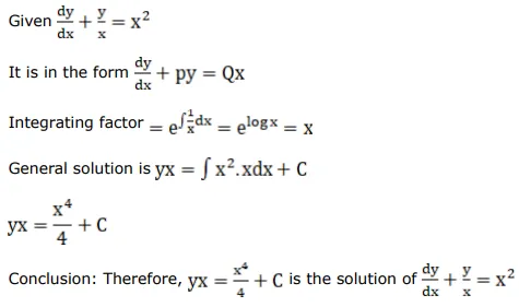 The general solution of the $D E \frac{d y}{d x}+\frac{y}{x}=x^{2}$ is