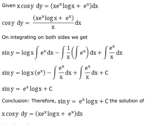 the solution of the DE $x \cos y d y=\left(x \mathrm{e}^{x} \log x+\mathrm{e}^{x}\right) d x$ is