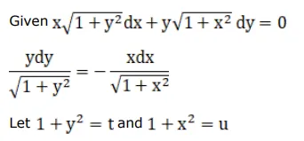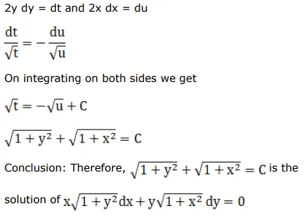 The general solution of the $\operatorname{DEx} \sqrt{1+\mathrm{y}^{2}} \mathrm{dx}+\mathrm{y} \sqrt{1+\mathrm{x}^{2}} \mathrm{dy}=0$ is