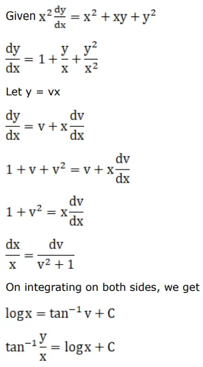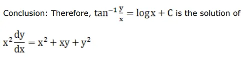 B. $\tan ^{-1} \frac{\mathrm{x}}{\mathrm{y}}=\log \mathrm{x}+\mathrm{C}$