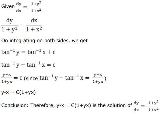 The solution of the $\operatorname{DE} \frac{d y}{d x}=\frac{\left(1+y^{2}\right)}{\left(1+x^{2}\right)}$ is.