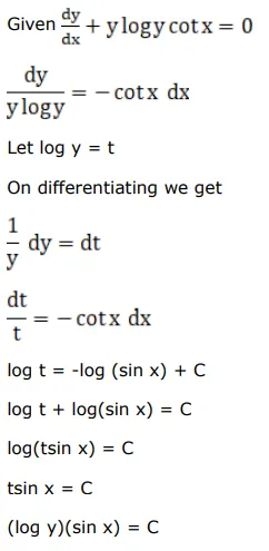 The solution of the $D E \frac{d y}{d x}+y \log y \cot x=0$ is