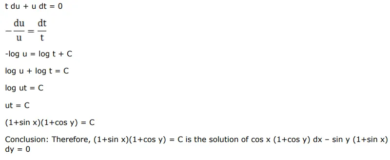 The solution of the $D E \cos x(1+\cos y) d x-\sin y(1+\sin x) d y=0$ is