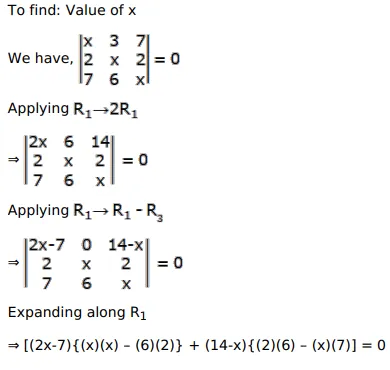 The solution set of the equation $\left|\begin{array}{ccc}\mathrm{x} & 3 & 7 \\ 2 & \mathrm{x} & 2 \\ 7 & 6 & \mathrm{x}\end{array}\right|=0$ is