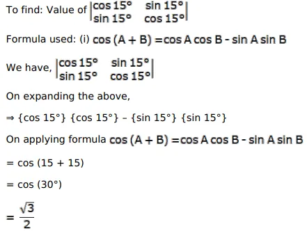 $\left|\begin{array}{cc}\cos 15^{\circ} & \sin 15^{\circ} \\ \sin 15^{\circ} & \cos 15^{\circ}\end{array}\right|=?$