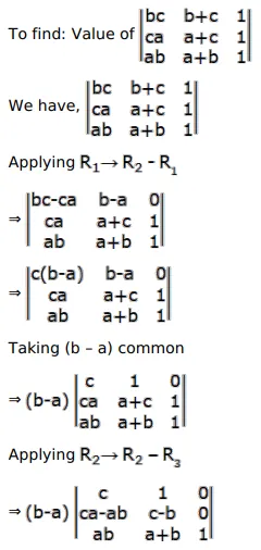 $\left|\begin{array}{lll}b c & b+c & 1 \\ c a & c+a & 1 \\ a b & a+b & 1\end{array}\right|=?$