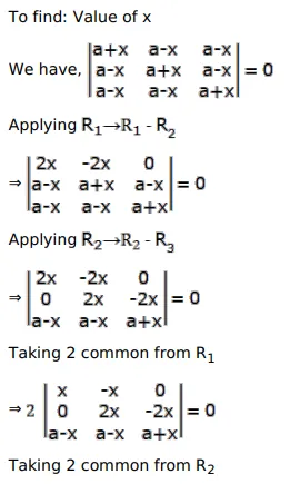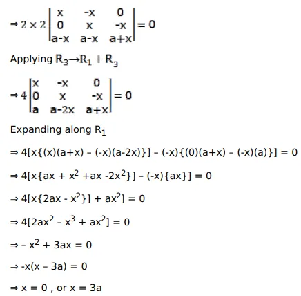 The solution set of the equation $\left|\begin{array}{lll}a+x & a-x & a-x \\ a-x & a+x & a-x \\ a-x & a-x & a+x\end{array}\right|=0$ is