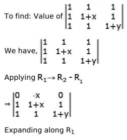 $\left|\begin{array}{ccc}1 & 1 & 1 \\ 1 & 1+x & 1 \\ 1 & 1 & 1+y\end{array}\right|=?$