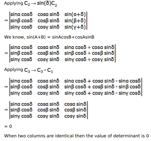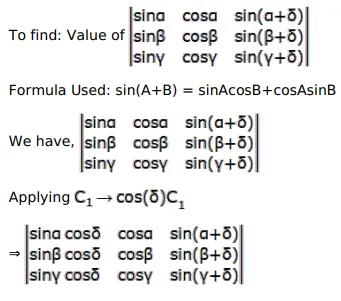 $\left|\begin{array}{ccc}\sin \alpha & \cos \alpha & \sin (\alpha+\delta) \\ \sin \beta & \cos \beta & \sin (\beta+\delta) \\ \sin \gamma & \cos \gamma & \sin (\gamma+\delta)\end{array}\right|=?$