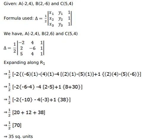 The vertices of a a $A B C$ are $A(-2,4), B(2,-6)$ and $C(5,4)$. The area of a $A B C$ is