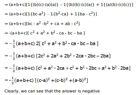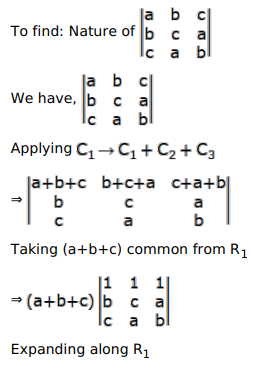 If $a, b, c$ be distinct positive real numbers then the value of $\left|\begin{array}{lll}a & b & c \\ b & c & a \\ c & a & b\end{array}\right|$ is