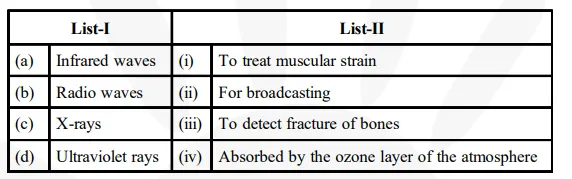 Match List-I (Electromagnetic wave type) with List-II (Its association/application) and select the correct option from the choices given below the lists: